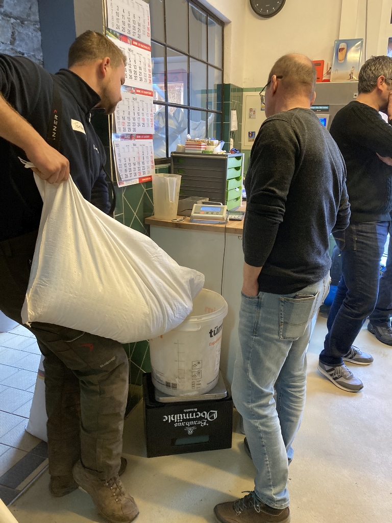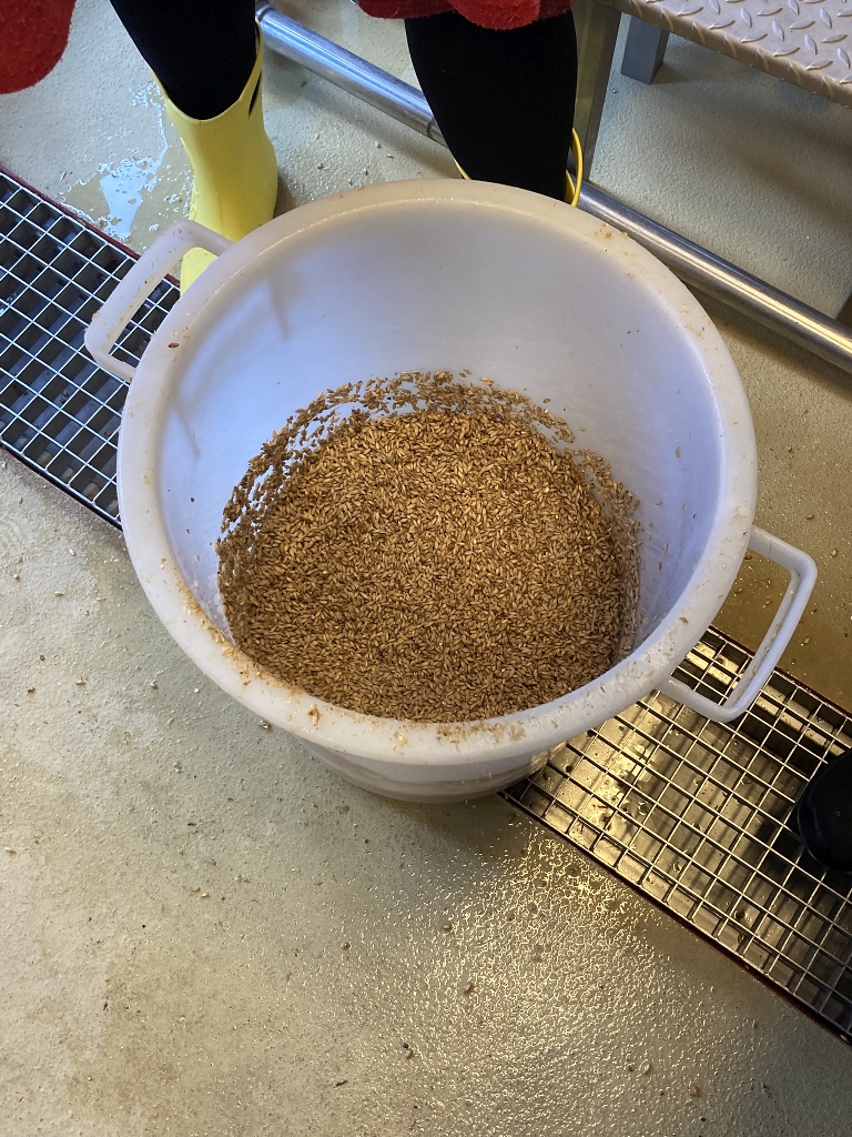 Wir erfuhren, dass zum Brauen „zweizeilige Gerste mit Braueignung“ verwendet wird, die im Vergleich zur vierzeiligen Gerste grössere Körner produziert, und die Braueignung durch einen hohen Stärke und niedrigen Eiweißgehalt erreicht wird. Torben steuerte seine Erfahrungen als Anbauer von Braugerste hinzu.