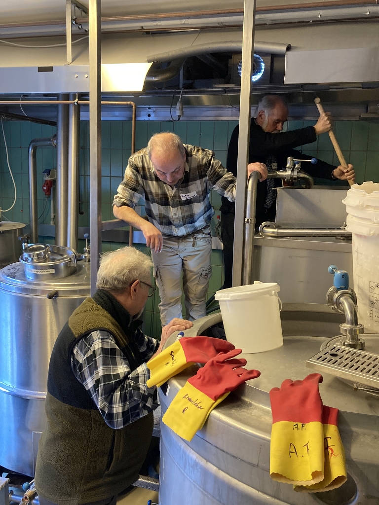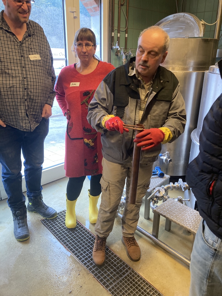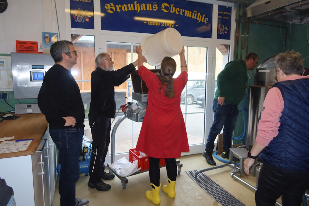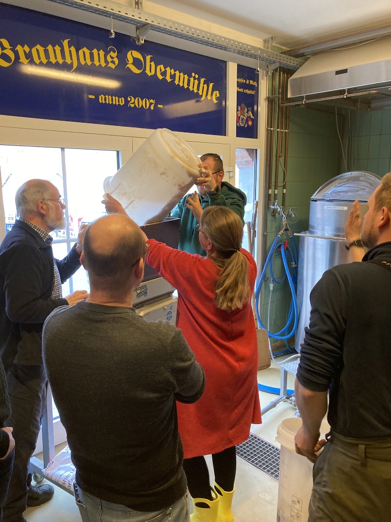 Nach einer Einführung durch Braumeister Achim Franzen, ging es auch gleich zur Sache. Schließlich musste der Sud 8 Stunden fertig zubereitet zur Vergärung in den Gärbottich kommen.