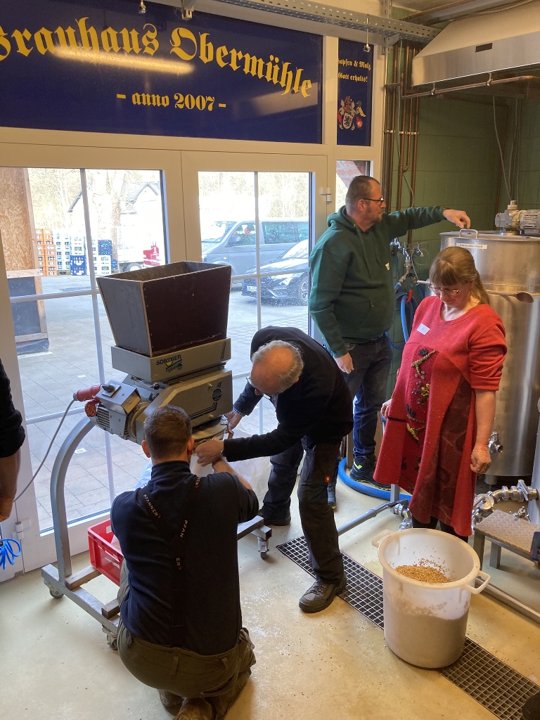 In einer Rastpause gab noch eine Lektion Malzkunde durch Braumeister Achim: wie wird aus dem Gerstenkorn ein Malzkorn.