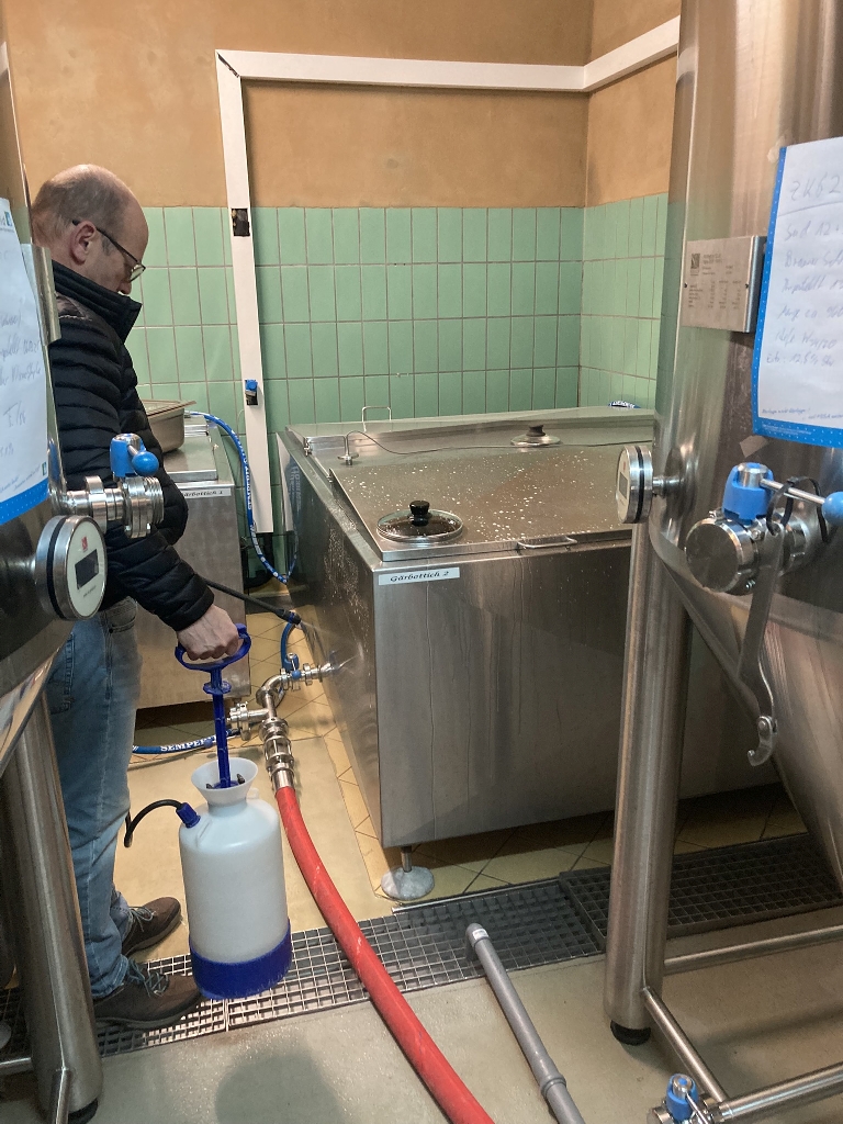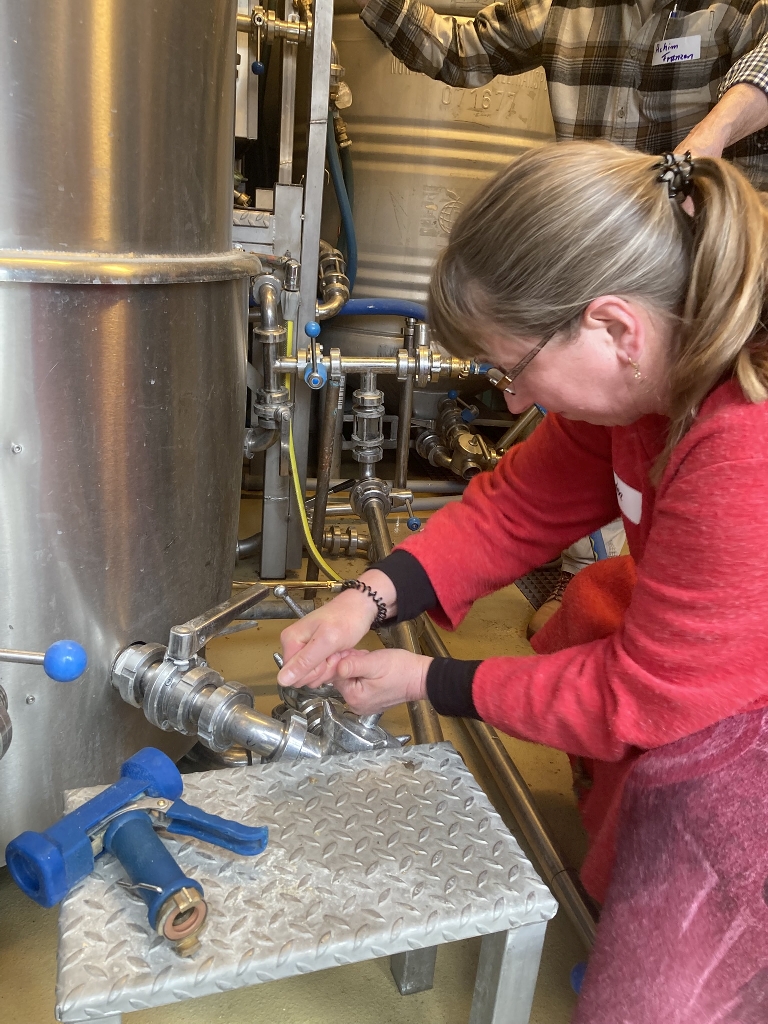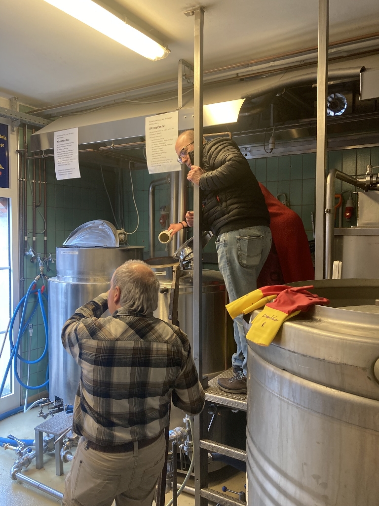 Mit einem geringen Restzuckeranteil wird das Bier dann in den Lagertank überführt. Dort erfolgt noch eine Nachgärung bei der entstehendes CO2 im Bier als Kohlensäure gebunden wird, was später für den prickelnden Geschmack bei Trinken sorgt. Nach weiteren 7 Wochen Reifung ist unser Bier dann bereit zur Abfüllung. Dann werden wir wieder vor Ort sein und unser Bier erstmals verkosten können….
