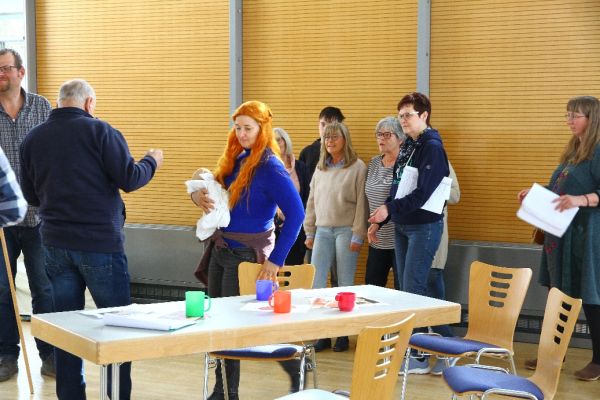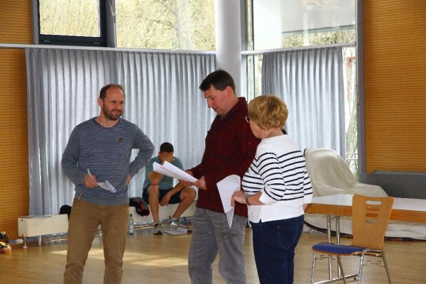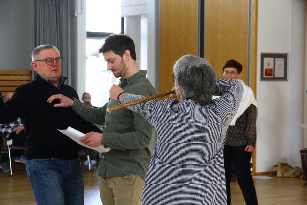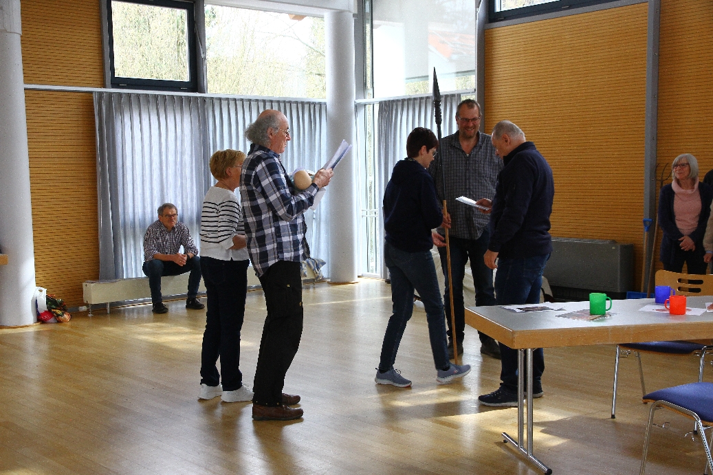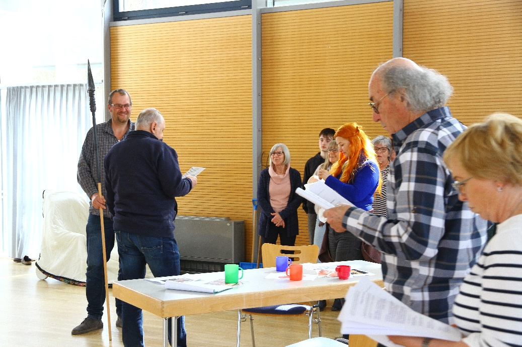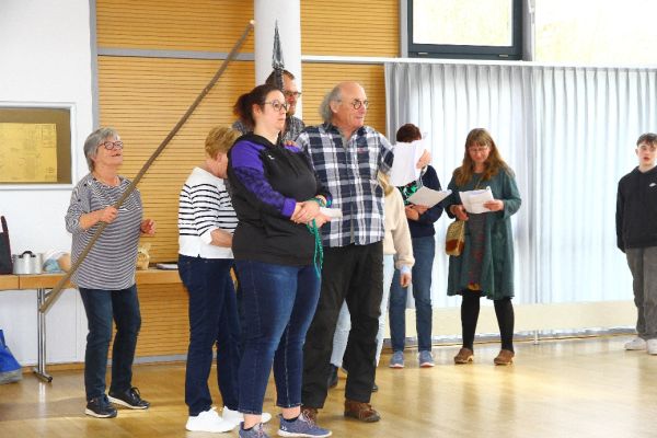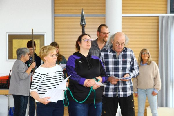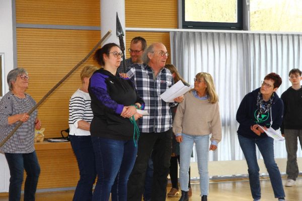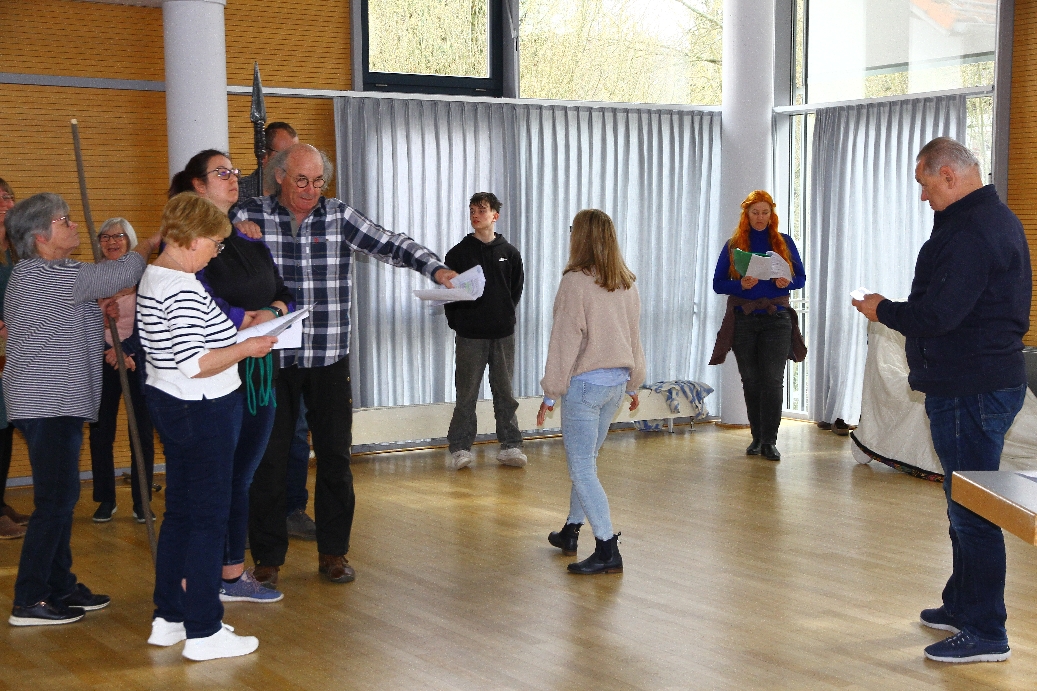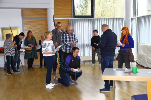 Die Proben für das Theaterstück „Die Hexe vom grauen Stein“ sind in vollem Gange. Bisher wurden die einzelnen Akte und Szenen immer getrennt voneinander geprobt. Am vergangenen Wochenende gab es für alle Emsemblemitglieder des „Hecketheaters“ zwei intensiv Übungstage, bei denen alle Akte und Szenen des Stücks nacheinander geprobt wurde. Für viele Darsteller war dies eine gute Gelegenheit das Stück als Ganzes zu erleben und die Zusammenhänge zu verstehen. Karin Köhler, Organisatorin und Regisseurin, zeigte sich mit dem Übungswochenende sehr zufrieden. Sobald es die Witterung zulässt, sollen die Proben am Ort der Aufführung stattfinden.