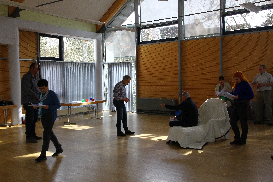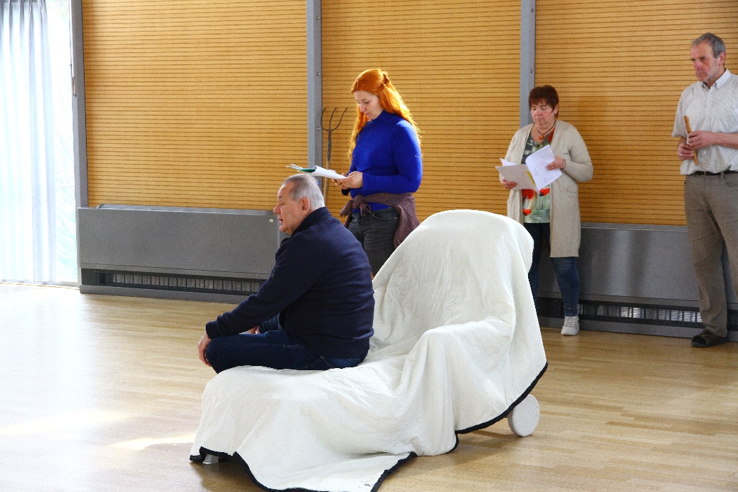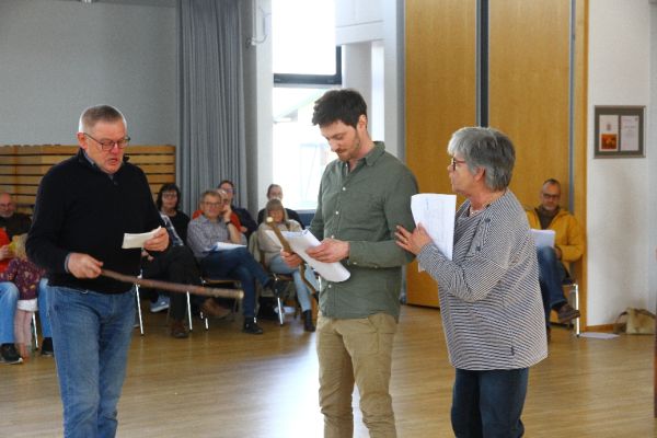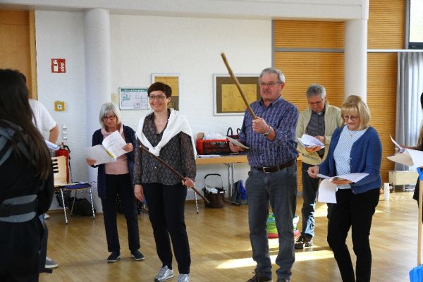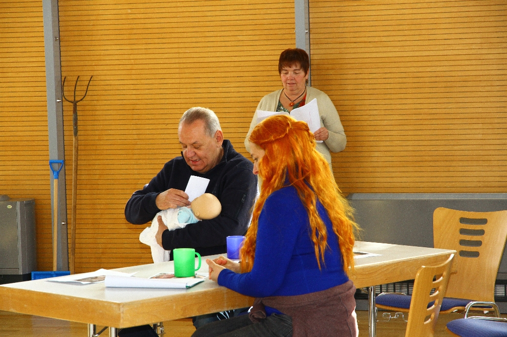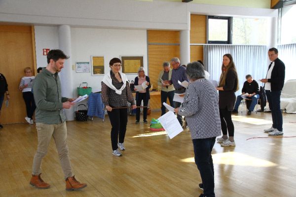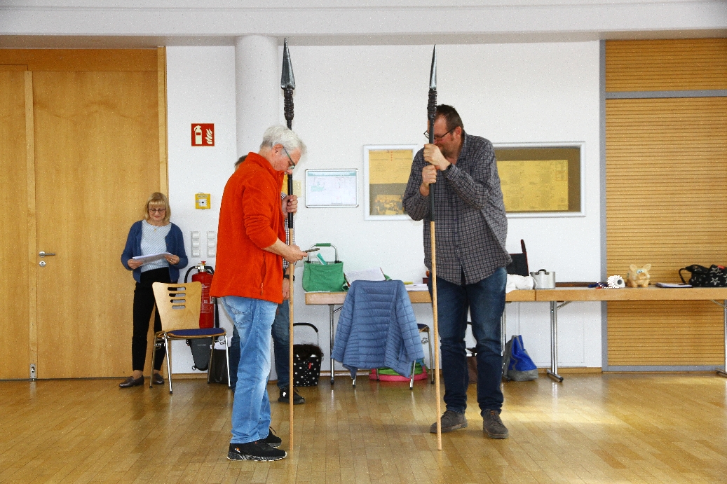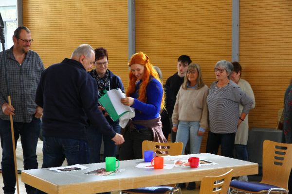 Die Proben für das Theaterstück „Die Hexe vom grauen Stein“ sind in vollem Gange. Bisher wurden die einzelnen Akte und Szenen immer getrennt voneinander geprobt. Am vergangenen Wochenende gab es für alle Emsemblemitglieder des „Hecketheaters“ zwei intensiv Übungstage, bei denen alle Akte und Szenen des Stücks nacheinander geprobt wurde. Für viele Darsteller war dies eine gute Gelegenheit das Stück als Ganzes zu erleben und die Zusammenhänge zu verstehen. Karin Köhler, Organisatorin und Regisseurin, zeigte sich mit dem Übungswochenende sehr zufrieden. Sobald es die Witterung zulässt, sollen die Proben am Ort der Aufführung stattfinden.