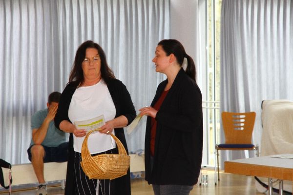 Am Ende des 1. Tages bekamen die Darstellerinnen und Darsteller noch Besuch und es wurden Beispielkostüme aus dem Kostümfundus Bonbaden vorgestellt.