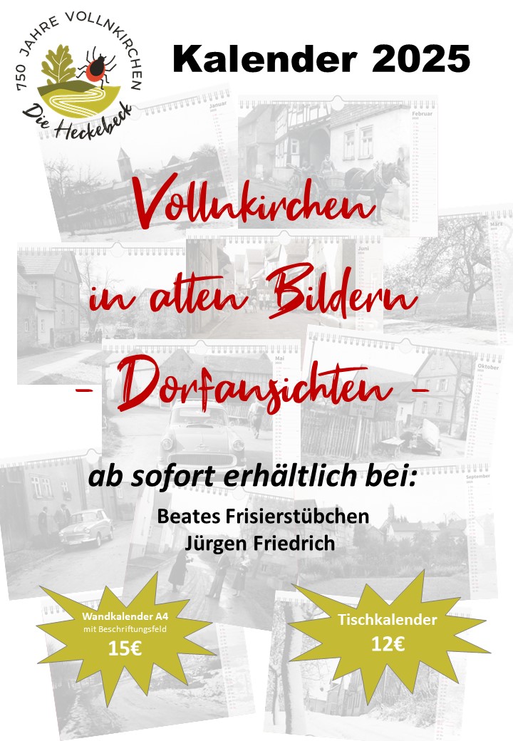ab sofort ist ein Vollnkirchen Kalender für 2025 erhältlich.
