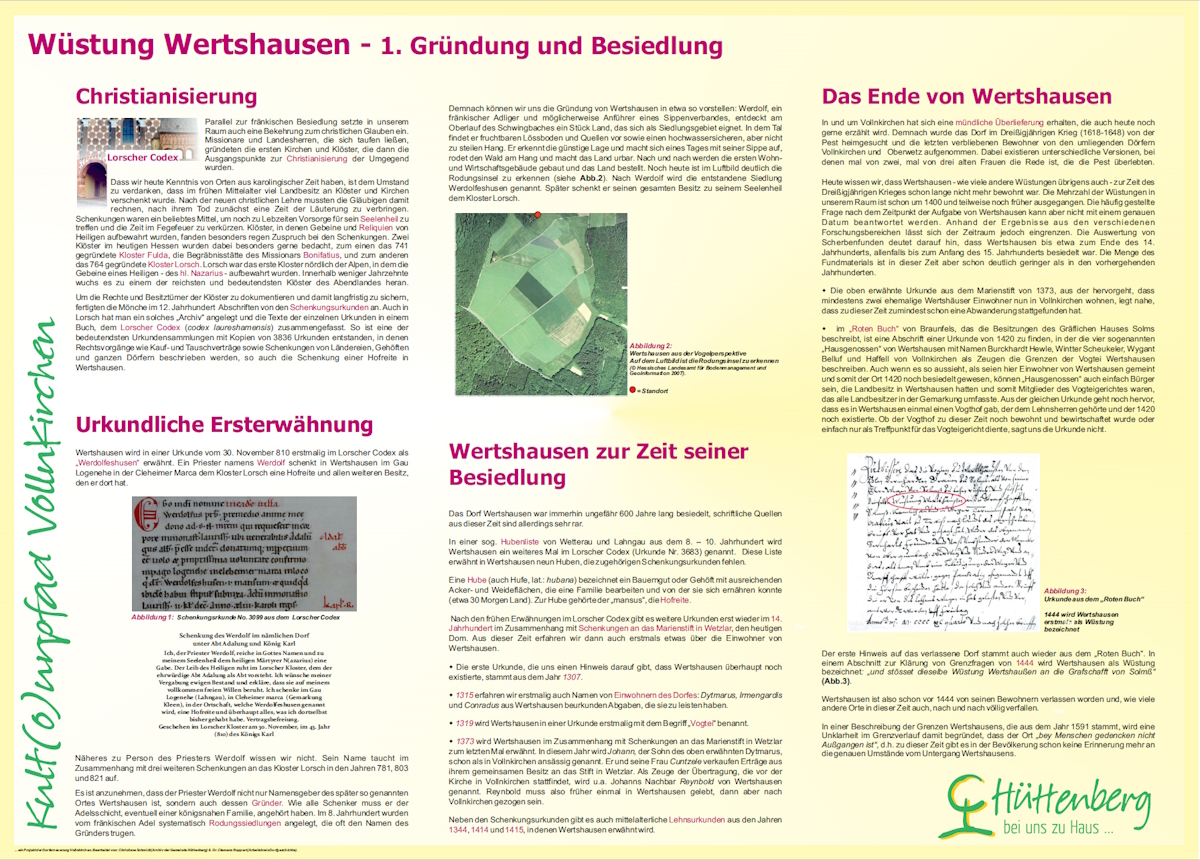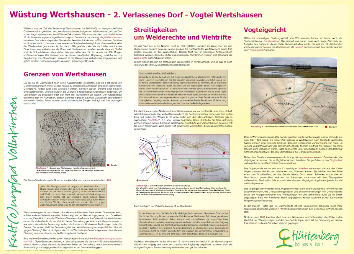 Im Rahmen der Dorferneuerung in Vollnkirchen gab es einen Arbeitskreis Dorfgeschichte, der sich mit der Geschichte der Wüstung Wertshausen beschäftigte. Die Ergebnisse dazu sind in einer gemeindeeigenen Publikation veröffentlicht worden. Parallel und im Nachgang zur Dorferneuerung haben sich weitere Projekte zu geschichtlichen und kulturhistorischen Themen entwickelt. Daraus ist die Idee entstanden, das gesammelte Wissen vor Ort auf Infotafeln Besuchern zugänglich zu machen.